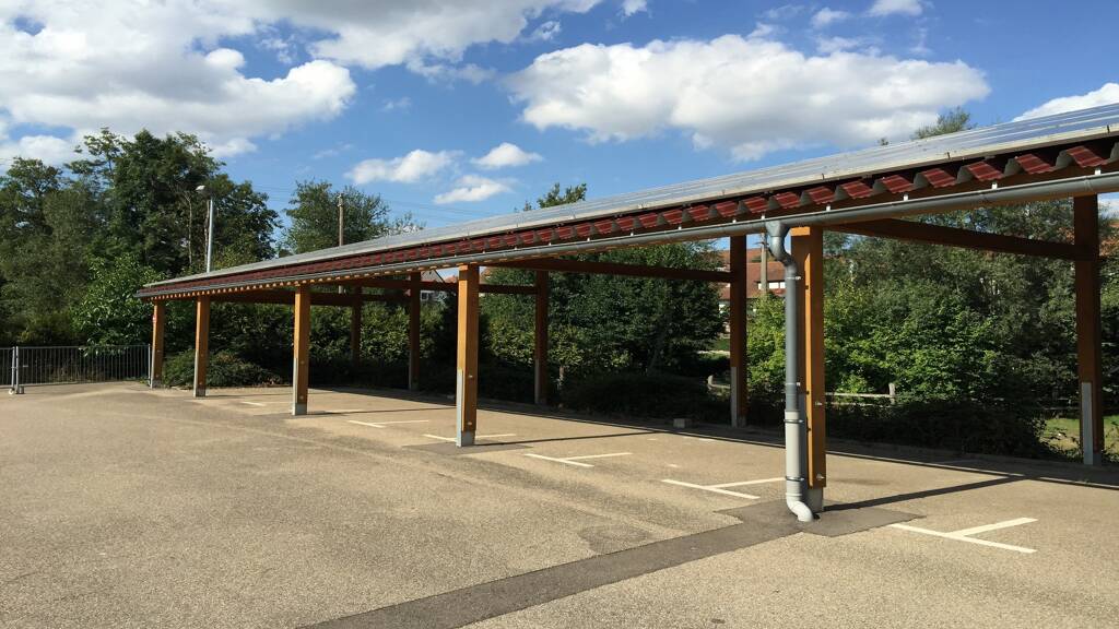 Es handelt sich um einen videoüberwachten Carport für ca. 15 Pkw-Parkplätze plus 30 weitere Stellplätze im Freien!