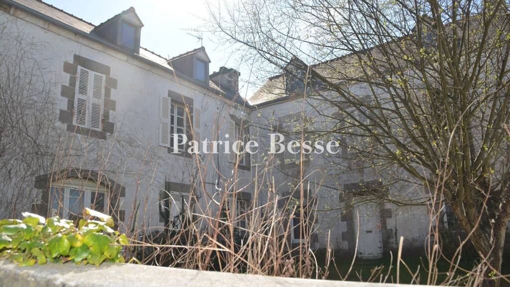 In need of a full restoration, the rubble stone, L-shaped villa is one of the town's oldest buildings. Built around a courtyard, it has a slate roof, faces northeast and includes two adjacent stone wings, each with their own entrance, which could be separated in order to create two dwellings. With three storeys, including a ground floor, a main floor and a second floor under the eaves, its plaster-coated main façade is cadenced by rectilinear windows, while the back of the house, in exposed rubble stone, has granite window and door surrounds and faces an initial garden that separates the villa from the property's outbuildings. In addition, a large plot of land, partially planted with trees and located behind the stone outbuilding facing the villa, could be used for a real estate project, with an independent entrance already located at one end, whereas two stone annexe buildings, set back from the main dwelling and extending on from the courtyard, could be used as sheds, workshops or storage rooms, as needed.