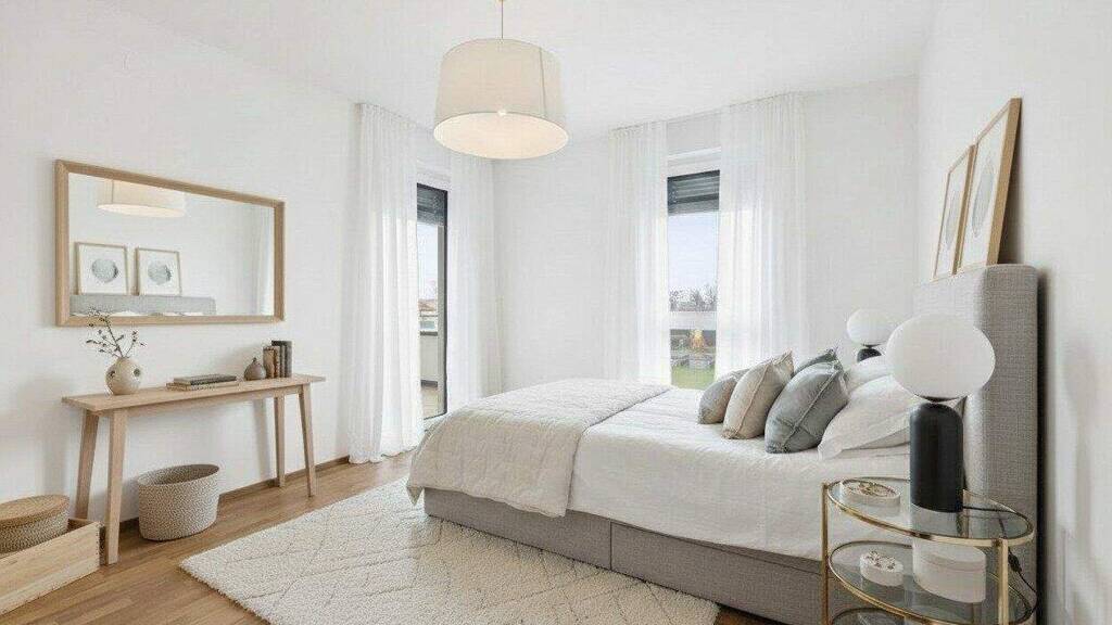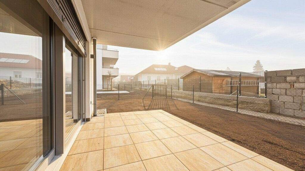 In Zukunft könnte Ihr Tag so starten: Sie blinzeln bereits beim Aufstehen durch die bodentiefen Fenster der Sonne entgegen, stellen Ihre Füße auf den angenehm natürlichen Holzboden und machen die erste Schritte in den Tag Richtung Badezimmer, wo Sie die mediterranen Fliesen gedanklich in den Süden reisen lassen. Jetzt fehlt nur noch der originale Espresso, den Sie in der geräumigen Wohnküche zubereiten und dessen Duft alle Sinne weckt. Nun aber raus ins Freie: die Hebe-Schiebetüre auf, den Geruch des frischen Tages einatmend und Sie wissen, wie bella Ihr Vita ist.