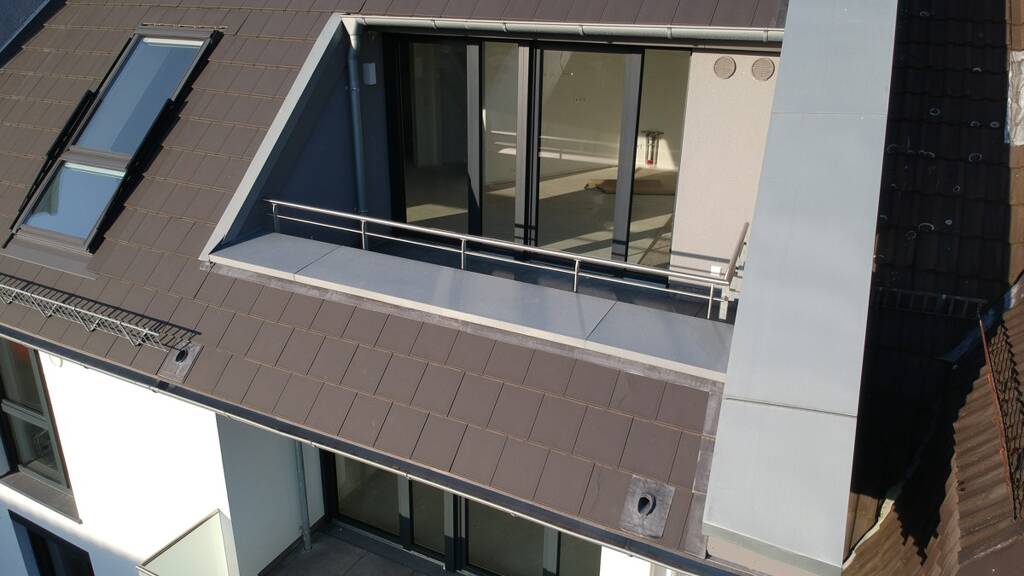 - Balkon mit hochwertigen Bodenbelägen aus Feinsteinzeug