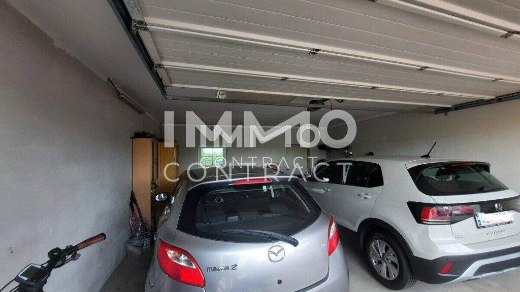 Zusätzlich zum Innenraum bietet das Haus eine Doppelgarage, eine Terrasse und einen Balkon.