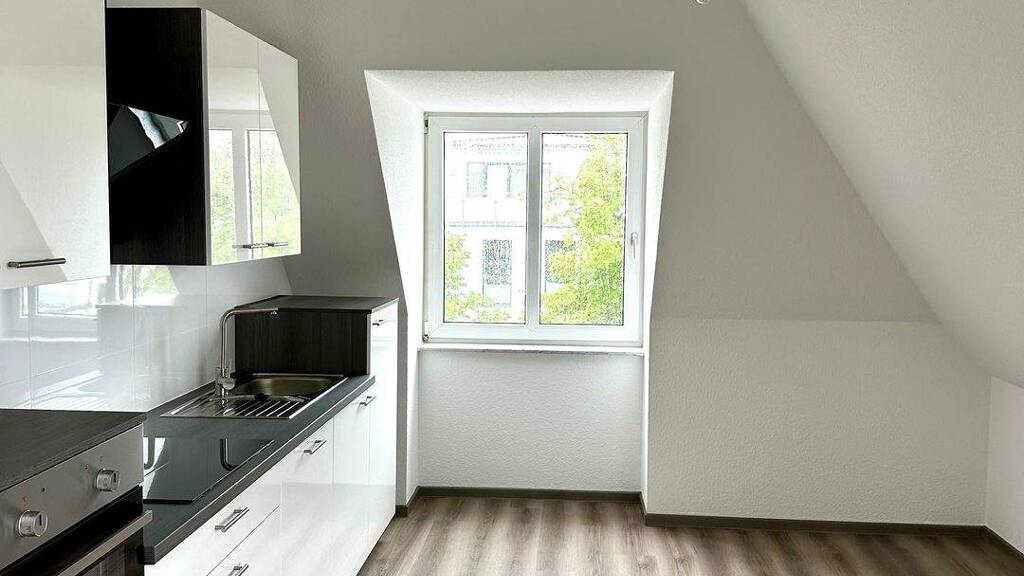Zur Wohnung gehört eine moderne Einbauküche mit Backofen, Cerankochfeld, Dunstabzugshaube, Spülmaschine sowie einer Kühl-Gefrierkombi.