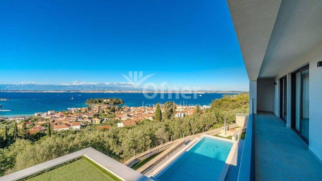 Zum Verkauf steht eine modern gestaltete Luxusvilla in Preko auf der Insel Ugljan. In ruhiger Lage gelegen, bietet diese exklusive Villa einen atemberaubenden Panoramablick auf das Meer und die Stadt Zadar - ideal für alle, die Privatsphäre und Luxus suchen.