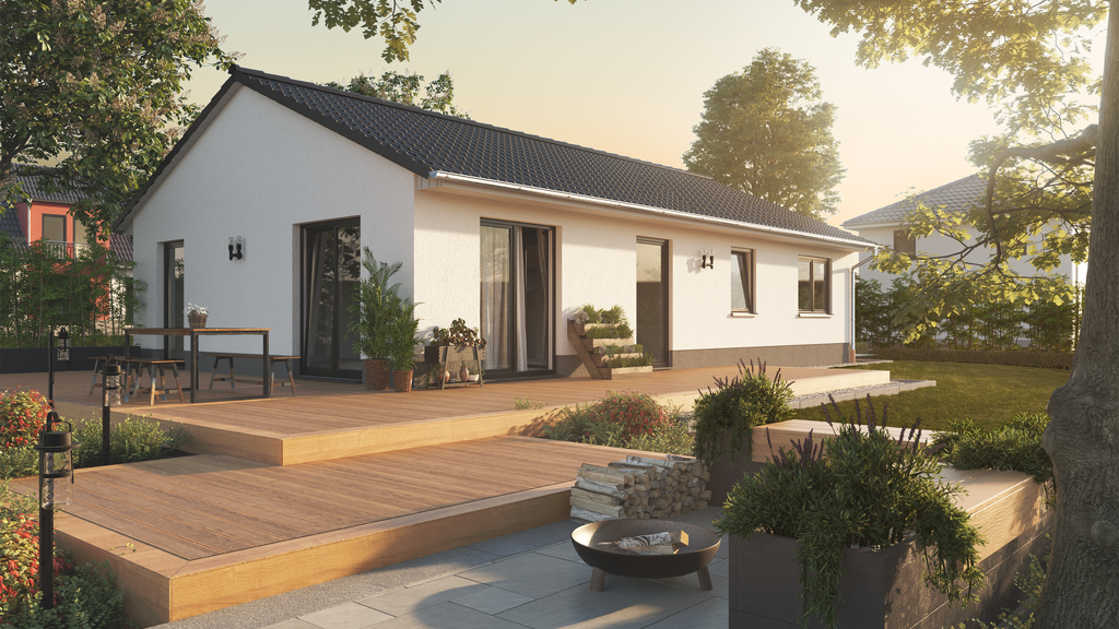 Dieser Bungalow ist nicht nur energiesparend und stufenlos gebaut, er lässt sich auch flexibel an die Bedürfnisse seiner Bewohner anpassen. So kann zum Beispiel ein weiteres Zimmer eingeplant werden, das als Kinder- oder Gästezimmer genutzt werden kann. Auch ein Gäste-WC ist möglich. Wer mehr Stauraum benötigt, aber keinen Keller bauen möchte, kann den Dachboden nutzen. Und noch viel besser, das Haus ist super modern und kommt mit einer klasse Ausstattung daher, wo man auf nahezu nichts verzichten muss. Euer neues Leben beginnt jetzt! Meldet euch bei mir und wir planen eure Zukunft. Ich freue mich euch kennenzulernen!