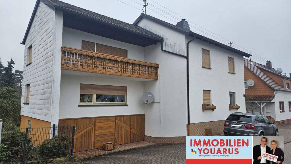 Freistehendes und geräumiges Zweifamilienhaus mit Balkon, Garten, Garagen in Ottweiler