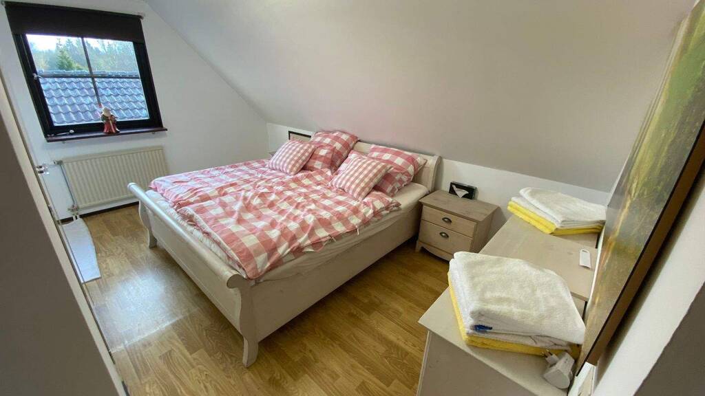 Das Haus wurde in klassischer Holzbauweise errichtet und fügt sich mit seiner Holzfassade sowie der Dacheindeckung aus langlebigen Betondachsteinen harmonisch in die umliegende Landschaft und Bebauung ein. Der offen gestaltete Grundriss im Erdgeschoss schafft eine helle, freundliche Wohnatmosphäre und ermöglicht fließende Übergänge zwischen den einzelnen Wohnbereichen.