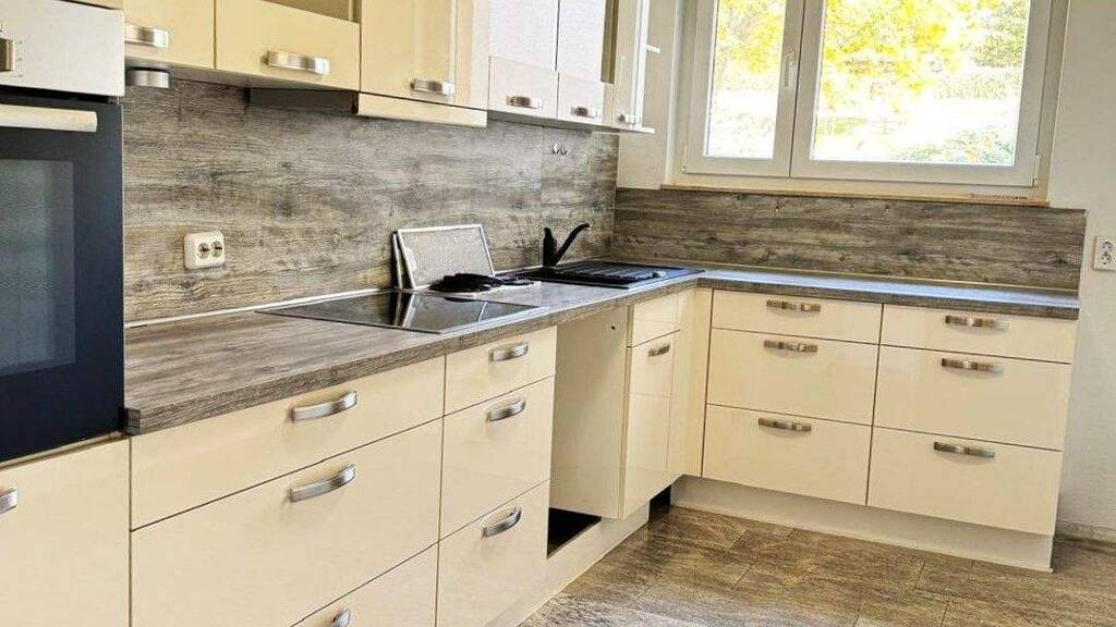 - EinbaukĂĽche, groĂźer Balkon, eigener Stellplatz, Kellerraum TeilverflieiĂźt - Teillaminat