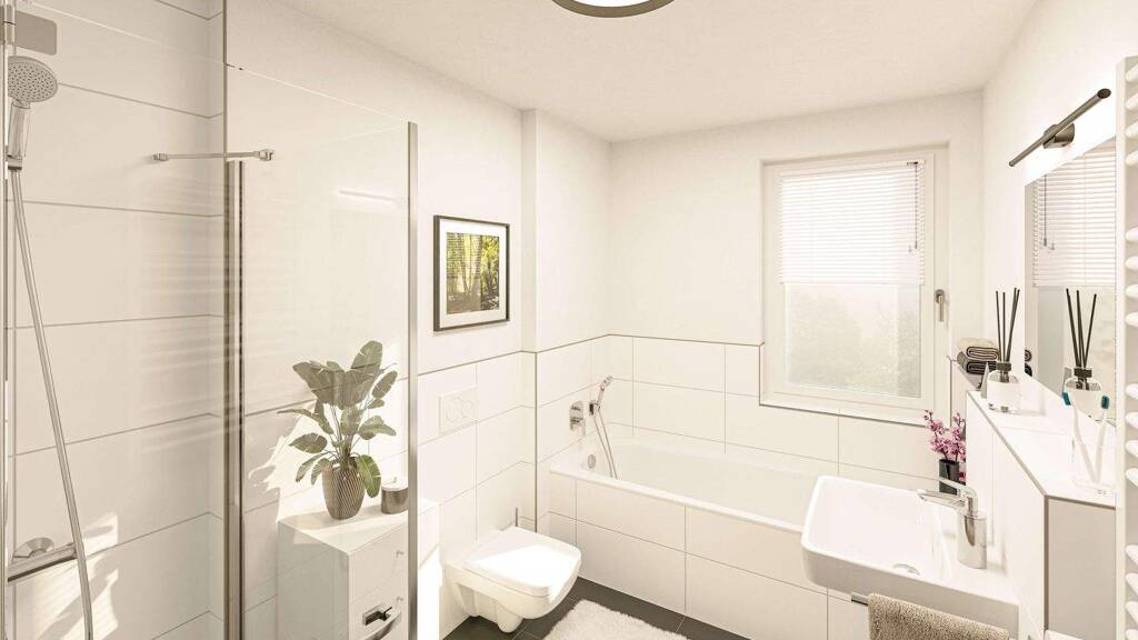 Offene Wohn- und Essbereiche mit schönen angeschlossenen Terrassen oder Balkonen sowie Tageslicht-Badezimmern, Abstellräumen und großen Fensterflächen, laden dazu ein, sich wohlzufühlen. Der Fahrstuhl, die Tiefgaragenstellplätze, der kleine Spielplatz und der gepflegte Außenbereich sorgen neben vielen anderen Wohn-Highlights für ganzheitlichen Komfort. In den Erdgeschosswohnungen bietet der eigene Gartenanteil die Möglichkeit, sich einen noch größeren Platz in der Sonne einzurichten.