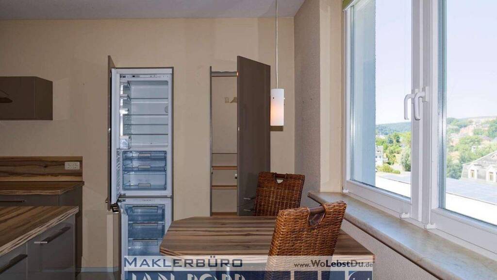 Geräumige, teilmöblierte Dreiraumwohnung mit Einbauküche im sanierten Altbau. Drei Zimmer, Küche Flur, großes Tageslichtbad mit Wanne und ebenerdiger Dusche, Gäste-WC.