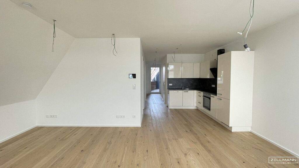 Der zentral gelegene Vorraum erschließt sämtliche Bereiche der Wohnung. Herzstück ist die großzügige Wohnküche, die Wohnen, Essen und Kochen in einem offen gestalteten Raum vereint. Durch die klare Zonierung entsteht ein harmonisches Raumgefühl mit viel Platz für gesellige Abende und entspanntes Wohnen. Die Küche ist funktional integriert und fügt sich selbstverständlich in das Gesamtbild ein.