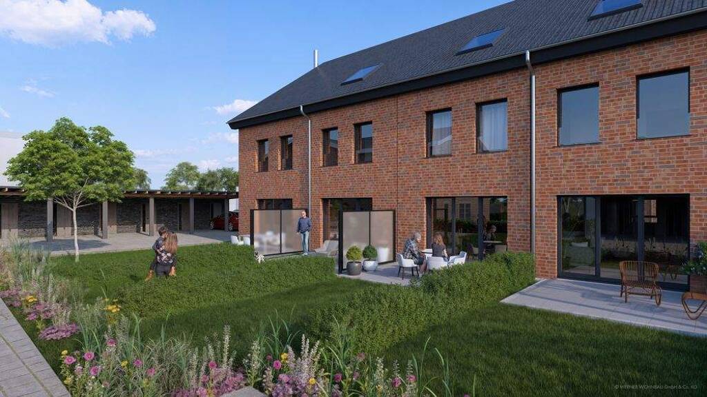Jedes Haus besitzt eine eigene Terrasse. Ein Carport mit Vorbereitung für E-Mobilität - teils mit integriertem Abstellraum für Gartengeräte und Fahrräder - muss separat erworben werden. Für eine effiziente Wärmeversorgung sorgt zentrale Energieversorgungsanlage auf Basis erneuerbarer Rohstoffe zzgl. einer PV-Anlage mit Batteriespeicher pro Haus, wodurch die Eigentümer eine Stromersparnis von ca. 40-50 % erzielen können.