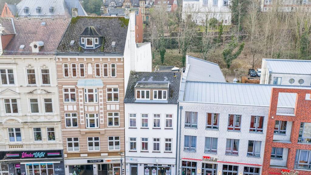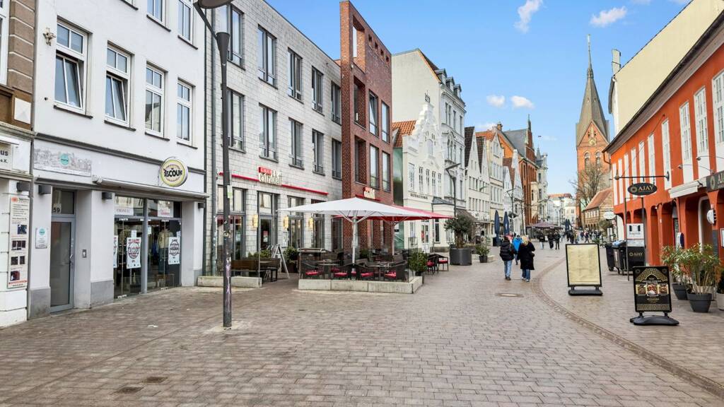 Die Immobilie in der Großen Straße 59 liegt im pulsierenden Herzen von Flensburg - einer Stadt, die Tradition, maritimes Flair und modernes Stadtleben perfekt vereint. Hier treffen historische Architektur, charmante Kopfsteinpflasterstraßen und moderne Einkaufsmöglichkeiten aufeinander.