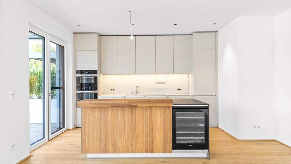Bei der Planung und Gestaltung wurde besonderes Augenmerk auf Großzügigkeit, Eleganz, Wohnkomfort und qualitativ hochwertige Ausstattung gelegt. Dies unterstreicht vor allem der geräumige und helle Koch-/Ess-/Wohnbereich mit Zutritt auf die Sonnenterrasse sowie die elegante Tischlerküche mit hellen Fronten, Kücheninsel und Miele Markengeräten.