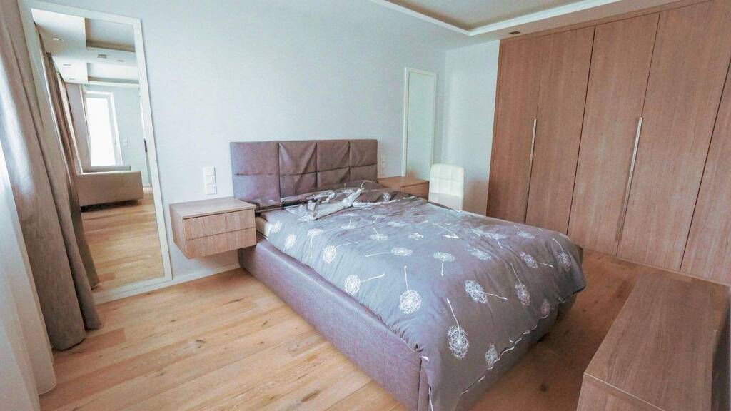 - Boden aus Eichenparkettdielen in Wohn- und Schlafzimmer - Küche, Diele und Bad großformatige Fliesen - Elegantes Duschbad mit Echtglas und Regalsystem - Indirekte, dimmbare LED-Beleuchtung im Wohn- und Schlafraum - Einbauküche - Wohnungseingangstüre mit zusätzlichem Einbruchschutz