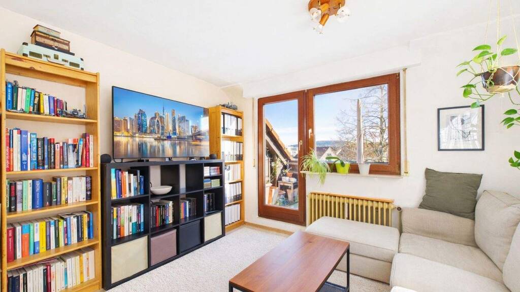 Diese charmante 2-Zimmer-Dachgeschosswohnung mit ca. 41m² Wohnfläche befindet sich in einem gepflegten Mehrfamilienhaus mit sechs Einheiten. Das Gebäude wurde 1983 erstellt und ist samt Wohnung in einem guten Zustand. Die Wohnung überzeugt durch einen gefälligen Grundriss mit offenem Wohn- und Essbereich von dem aus man einen direkten Zugang zur Loggia in Südausrichtung hat. Ein zweiter Balkon steht auf der Westseite zur Verfügung. Große bodentiefe Fensterflächen sorgen zusätzlich für eine freundliche Wohnatmosphäre.