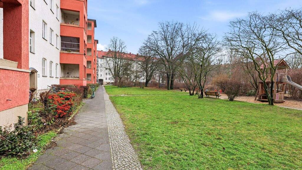 ?Baujahr 1938 - Massiv erbaut ?Denkmalschutz ?Hochparterre-Wohnung ?Fernwärme ?Saniert 2025 ?Wohnfläche: ca. 71 m² ?3 Zimmer ?Holzfenster - Doppelkastensystem ?Gespachtelte Wände ?Vinylboden ?Lichtdurchflutete Räume ?Schlafzimmer mit Balkon zum Innenhof ?Modernes Duschbad mit Fenster ?Hervorragende Anbindung an öffentliche Verkehrsmittel ?Großes Kellerabteil ?Sehr gepflegter Innenhof ?Hausgeld ca. 235 €/mtl. ?Erbbauzins ca. 52€/mtl. ?Erstbezug nach Sanierung
