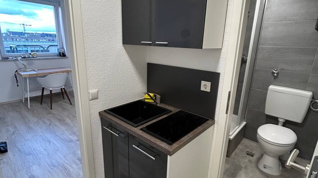 Das schöne Single-Apartment liegt im 2. OG eines Mehrfamilienhauses im Düsseldorfer Stadtteil Bilk und ist voll möbliert. Die kompakte Wohnung hat kleine Kochnische, die mit den gängigsten Küchenuntensilien ausgestattet ist. Der Wohn- und Schlafbereich ist ebenfalls so ausgestattet, dass man nur noch seine persönlichen Sachen mitbringen muss, ein schneller Internetanschluss ist ebenfalls vorhanden.