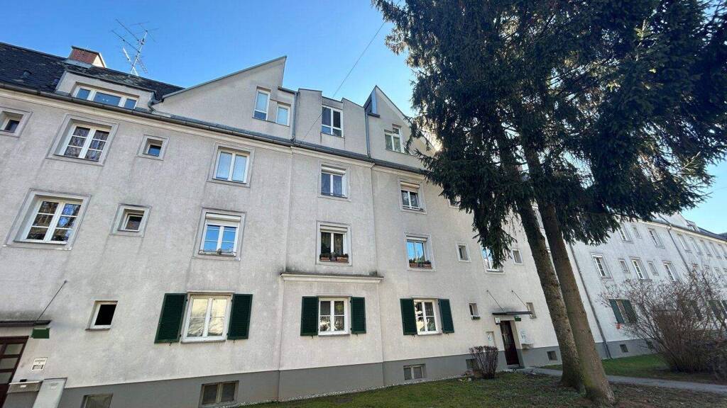 Diese gemütliche Familienwohnung (ca. 94 m²) mit 2 Schlafzimmern, einem großzügigen Wohnzimmer und extra Küche liegt im 3. und letzten Stock (ohne Lift) in ruhiger Siedlungslage zwischen dem Einkaufszentrum Citypark und dem Zentralfriedhof in 8020 Graz. Diese Wohnung hat wirklich viel zu bieten! Bad und WC mit Fenster! Das Gebäude wurde 1938 errichtet. Das Dachgeschoss wurde im Jahr 2001 ausgebaut und diese Wohnung mit Terrasse geschaffen. Die Kunststofffenster (Internorm) wurden bereits in 2-Scheiben-Isolierglas ausgeführt. Durch den Erhalt einiger Holzbalken und die teilweise Raumhöhe im Wohnzimmer von ca. 5 m machen diese Wohnung zu etwas Besonderem! 2 Klimageräte im Wohnzimmer und Schlafzimmer bieten zusätzlichen Komfort in den Sommermonaten.