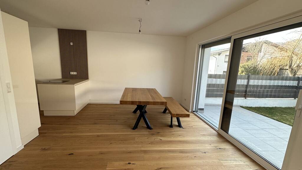 Erdgeschoss: Vorraum, Technikraum, WC, Abstellraum, lichtdurchfluteter Wohn/Küche/Essbereich mit rd. 49 m², heller Stiegenaufgang mit Milchglasfenster