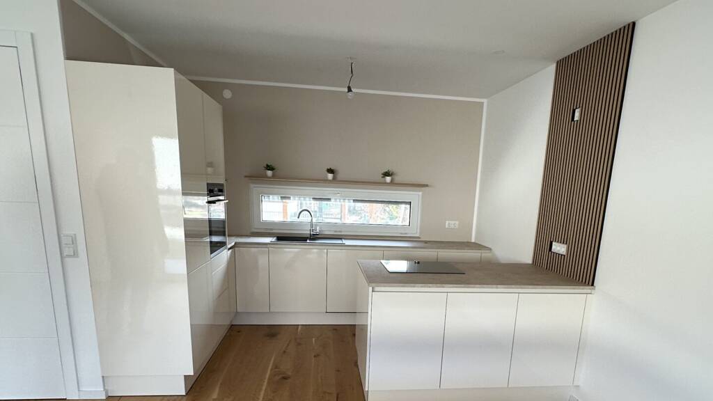 Der Außenbereich ist komplett fertig gestellt inkl. Fassade, Dach, Fenster, Rasen, Gartenzaun und Pflasterung. Im Innenbereich sind die Rohinstallationen (Elektrik, Heizung, Sanitär) sowie Estrich und Innenputz bereits erledigt. Die große Terrassentür wurde als Hebe-Schiebetür ausgeführt. Die Rollläden werden elektrisch bedient. Parkettboden bzw. Fliesen wurden verlegt, Malerarbeiten fertiggestellt sowie die sanitäre Ausstattung (Dusche, Badewanne, Waschbecken und Toilette) installiert. Eine moderne Einbauküche, Badezimmermöbel sowie der Außenpool komplettieren dieses Angebot.