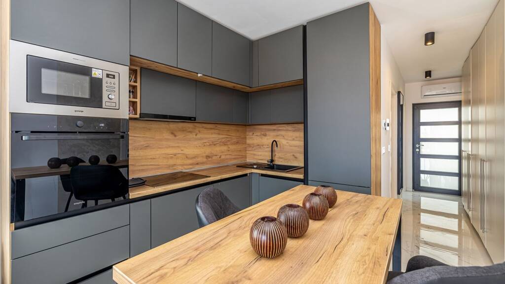 Erleben Sie den Gipfel des luxuriösen Wohnens in diesem wunderschönen Penthouse mit zwei voll ausgestatteten Apartments in ruhiger Lage. Genießen Sie den Panoramablick auf das Meer und entspannen Sie sich bequem von zu Hause aus. Modernes Design, Fußbodenheizung, Klimaanlage und vollmöbliert machen dieses Penthouse ideal für diejenigen, die Komfort und Stil suchen. Die erste Wohnung besteht aus einem Badezimmer, zwei Schlafzimmern, einer Küche mit Speisekammer und einem Wohnzimmer, von dem aus Sie durch eine Glaswand den Meerblick auf die Terrasse genießen können. Die zweite Wohnung besteht aus einem Badezimmer, einem Schlafzimmer, einer Küche mit Essbereich und einem Wohnzimmer sowie einem Balkon mit Blick auf das Meer. Das Anwesen verfügt über einen Garten von 15 m2 und einen Parkplatz. Es wird komplett möbliert verkauft und verfügt über Fußbodenheizung und Klimaanlage