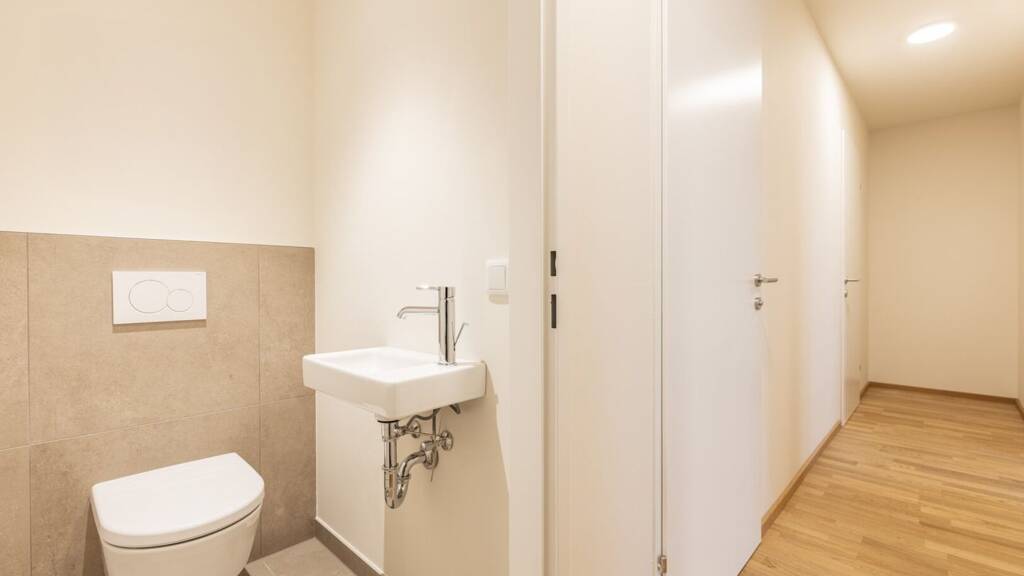 * Hochwertige Oberflächen wie Eichenparkett und 60×60 cm Feinsteinzeugfliesen