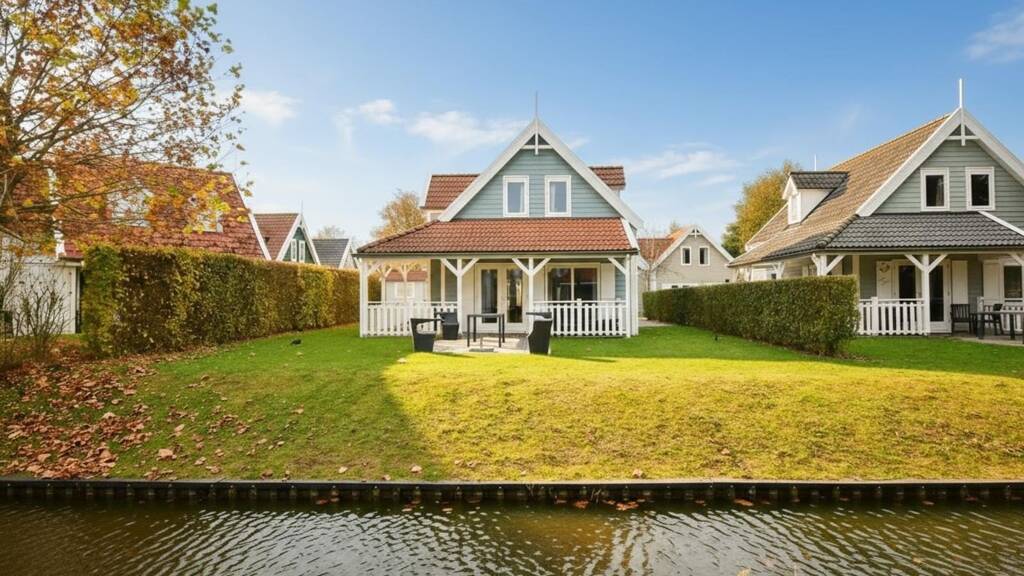 Freistehendes Ferienhaus auf eigenem Grundstück im Summio Parc Aquadelta in Bruinisse zu verkaufen. Dieses stimmungsvolle Ferienhaus aus dem Jahr 2003 verfügt über eine Wohnfläche von ca. 86 m² und liegt auf einem großzügigen, grün umrahmten Grundstück mit viel Privatsphäre. Die hellblaue Fassade, die weiße Veranda und das rote Ziegeldach verleihen dem Haus einen typischen Küstencharakter. Auf der Gartenseite blicken Sie über das Wasser und genießen von der Terrasse aus Sonne und Blick auf den Parkgraben. Im Inneren bietet das Haus ein helles Wohnzimmer mit Terrassentüren zur Veranda, eine offene Küche, drei Schlafzimmer im Obergeschoss und ein gepflegtes Badezimmer. Insgesamt gibt es sechs Schlafplätze, verteilt auf ein geräumiges Hauptschlafzimmer mit zwei Boxspringbetten und zwei Schlafzimmer mit jeweils zwei Einzelbetten. Im Obergeschoss befindet sich das Badezimmer mit Dusche, Waschtisch und zweitem WC. Im Erdgeschoss gibt es ein separates WC im Flur. Der Garten rund um das Haus ist größtenteils von Hecken eingefasst, wodurch viel Privatsphäre entsteht. Zur Wasserseite hin liegt eine große Rasenfläche - ideal für spielende Kinder oder um in einem Liegestuhl zur Ruhe zu kommen. Dank der Kombination aus eigenem Grundstück, freistehender Lage und den Einrichtungen des Parc Aquadelta ist dieses Objekt sowohl für die Eigennutzung als auch für die Vermietung an Urlaubsgäste eine attraktive Investition.