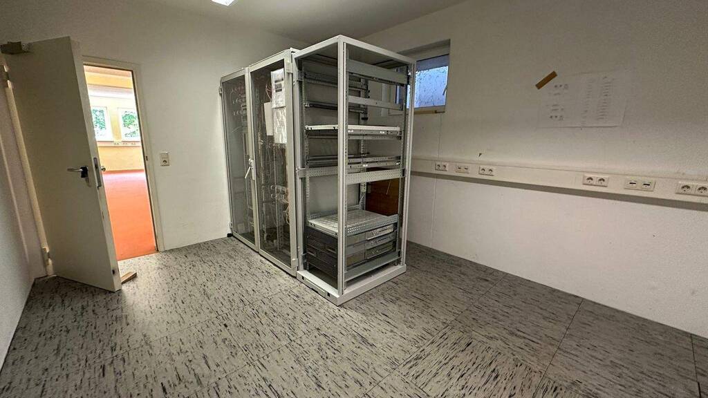 Die Büroräume sind mit strapazierfähigem Teppich ausgestattet, ansonsten Fliesenbelag. Die Fenster sind aus Kunststoff.