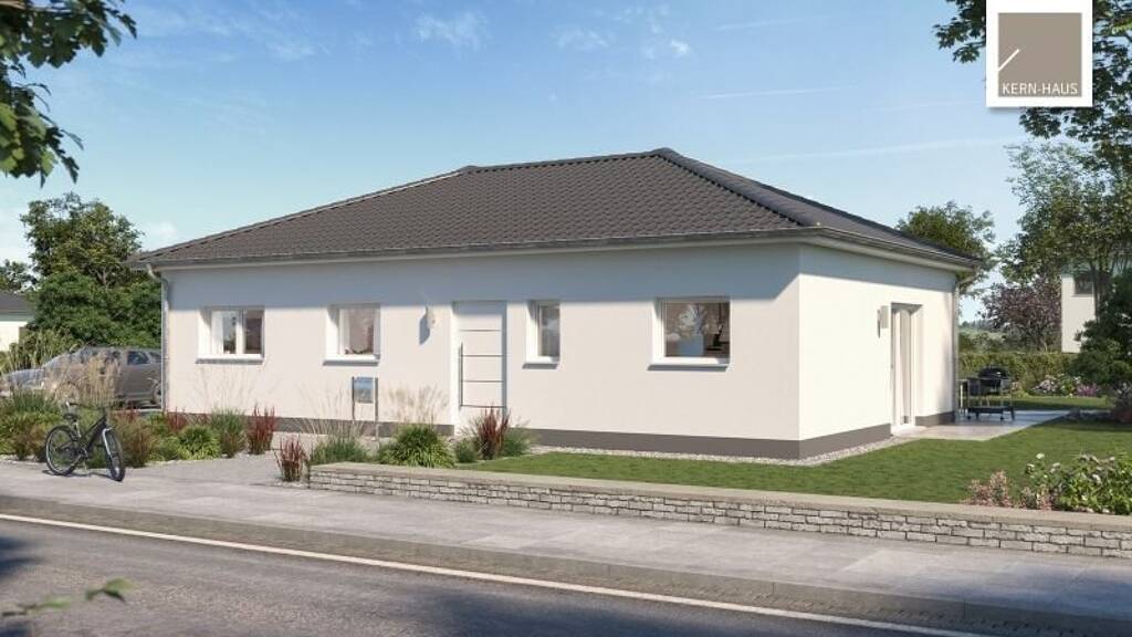 Kern-Haus bringt Sie in die eigenen vier Wände! Das Familienhaus Enea überzeugt als ebenerdiger Wohntraum mit einem offenen Wohn-/Essbereich mit angrenzender Küche. Hier kann das Leben statt finden. Außerdem bietet das Haus ein Elternschlafzimmer, ein Kinderzimmer und ein Home-Office. Genug Räume um Rückzugsmöglichkeiten zu schaffen. Abgerundet wird der eingeschossige Grundriss durch ein Familienbad, ein Gäste-WC und dem Hauswirtschaftsraum.