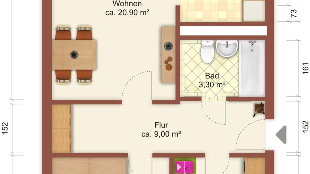 Die Wohnung wird vor Einzug vollständig renoviert. Das Bad wird zeitgemäß erneuert und mit Wanne ausgestattet. Die Wohnung verfügt außerdem über Wohnzimmer mit Balkon, Schlafzimmer, Kinderzimmer, Küche und Flur.