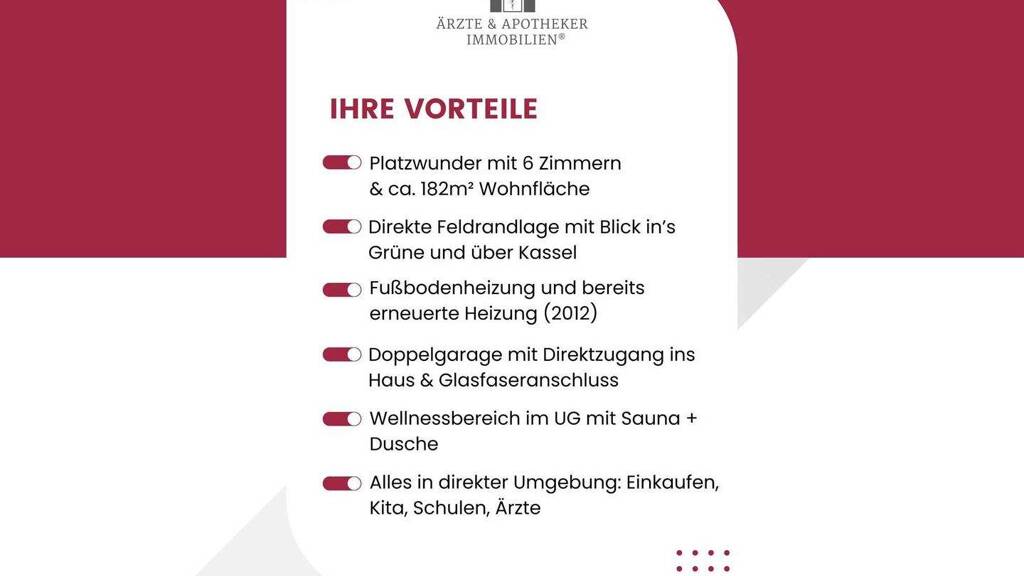 Ärzte, Grund- und Gesamtschule sind ebenfalls in Sandershausen + Heiligenrode verfügbar und das Schönste: der in 2023 neu errichtete Kindergarten Am Wolfsgraben ist in Sichtnähe und Sie können Ihrem Kind bei den knapp 300m auf dem Weg dorthin quasi zuschauen - besser geht's nicht! Auch die Autobahn mit der A7 führt an Sandershausen vorbei, so, dass Sie immer bequem auf Reisen gehen können. Spaziergänge erwünscht? die grünen Felder sind gleich Ihre eigene Straße hoch. Die Lage spricht hier für sich.