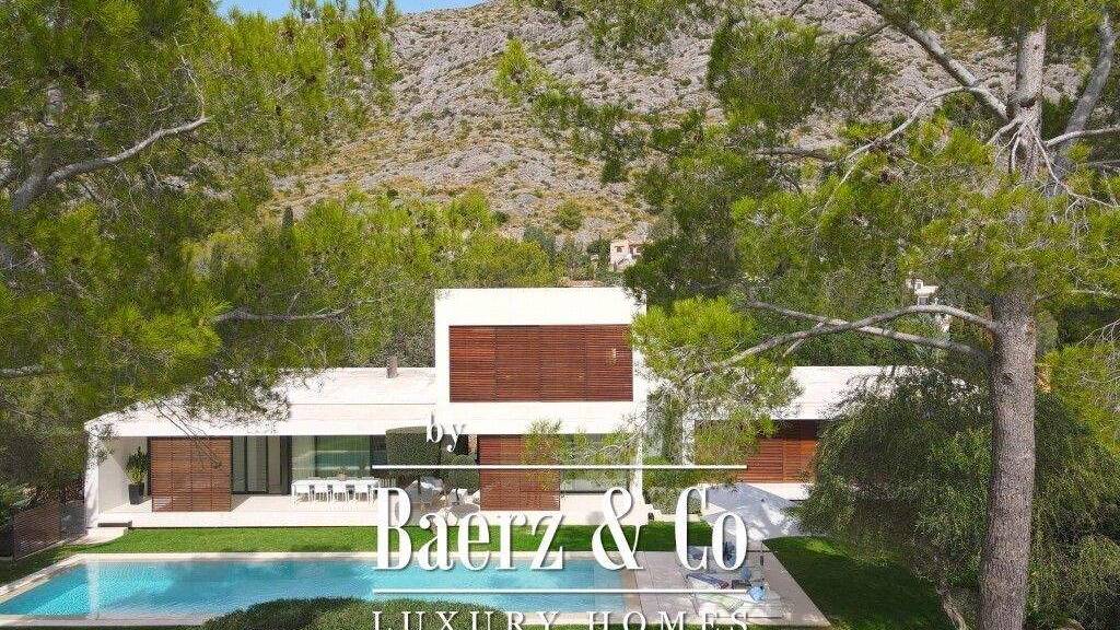 this bright and contemporary luxury villa in a privileged area just outside pollensa town has it all; the prime location, the architectural masterpiece, the manicured gardens, the very large swimming pool, and the tennis court.