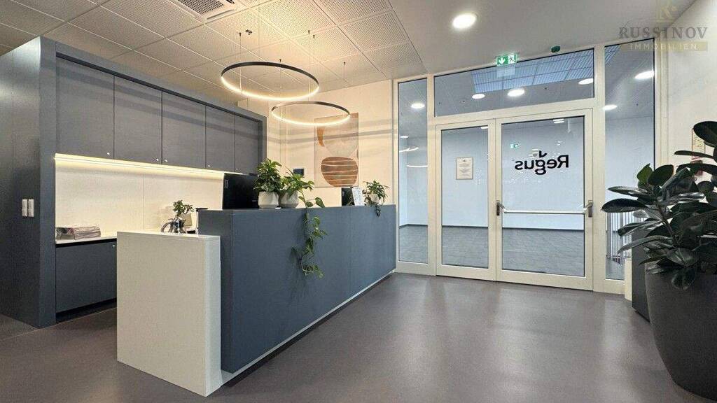 Neben Ihrer privaten Bürofläche nutzen Sie die großzügigen Allgemeinbereiche, stilvolle Lounges, eine Teeküche sowie Besprechungs- und Meetingräume. Die Rezeption ist ganztägig besetzt und empfängt Ihre Besucher professionell.