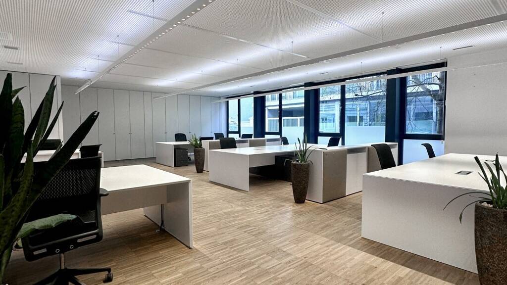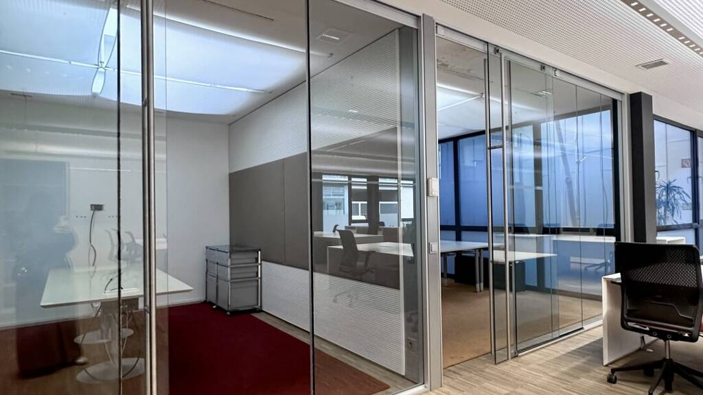 Die großzügigen Glasfronten sorgen für eine helle und freundliche Arbeitsatmosphäre. Auf Wunsch kann das bestehende Mobiliar übernommen werden, was eine ideale Gelegenheit für einen sofortigen und unkomplizierten Einzug bietet.