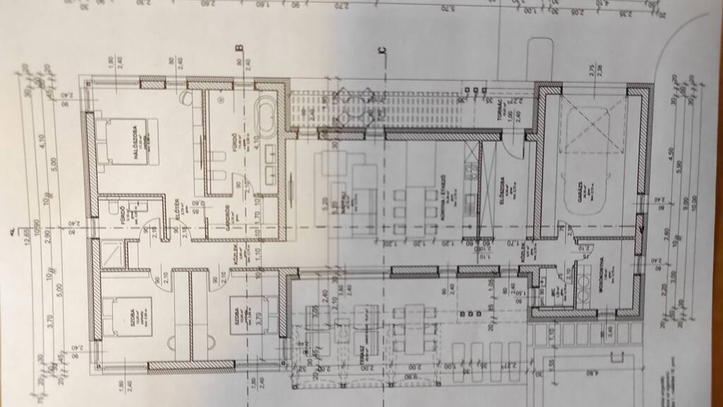 Raumaufteilung: Garage 24,19 m2, Waschküche 7,50 m2, Toilette 2,70 m2, Diele 4,51 m2, Eingangshalle 9,34 m2, Küche + Esszimmer 19,38 m2, Wohnzimmer 24,70 m2, Bad + Toilette 11,98 m2, Garderobe 4,76 m2, Diele 2,79 m2, Zimmer 17,22 m2, Diele 6,60 m2, Bad + Toilette 5,15 m2, Zimmer 12,95 m2, Zimmer 12,95 m2, Terrasse 45,04 m2, Terrasse 18,81 m2.