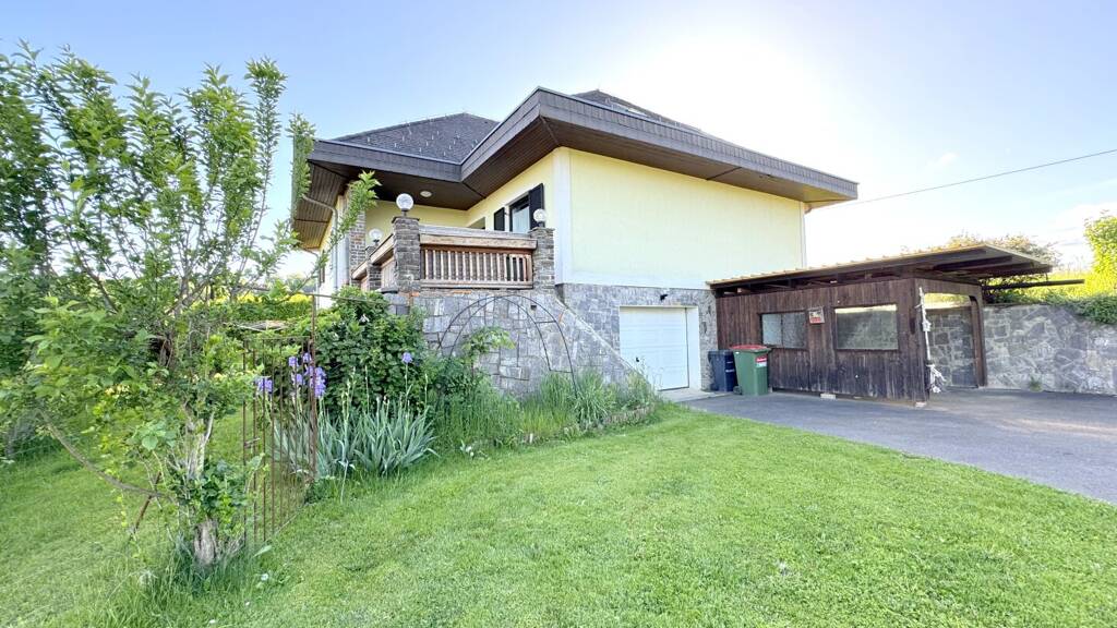 Die Nutzfläche des Hauses beträgt ca.198 m². Das Haus ist in den Hang gebaut, über eine private asphaltierte Straße fahren Sie bequem in den Keller ein , wo sich die Garage mit elektrischem Tor befindet. Zusätzlich ist ein Carport vorhanden. Im Keller befinden sich 1 Garage, 1 Zimmer, WC, Technikraum bzw. Waschraum, Erdkeller und 2 weitere Lagerräume. Die Außenwände sind 30 cm breit und die Holzfenster verfügen über eine Doppelverglasung. Die Beheizung erfolgt über eine Öl Zentralheizung/feste Brennstoffe, alternativ ist im Erdgeschoß noch ein Etagenherd in der Küche vorhanden. Die Warmwasseraufbereitung wird mit einer kostengünstigen Solaranlage betrieben. Im Erdgeschoß befindet sich vor dem Haupteingang eine Terrasse mit Grillplatz. Vom Vorraum gellangen Sie zentral in 3 Zimmer, eine extra Küche mit Essplatz, 1 große Speis, extra Toilette , 1 Bad mit Wanne/Dusche /Bidet/ Tageslichtfenster. Im ausgebauten Dachgeschoß eröffnet sich ein großer Wohnbereich mit einer kleinen Bar. Weiters bietet Ihnen das Dachgeschoß zwei Zimmer sowie 1 Bad mit Wanne/WC/Tageslichtfenster und eine Sauna.