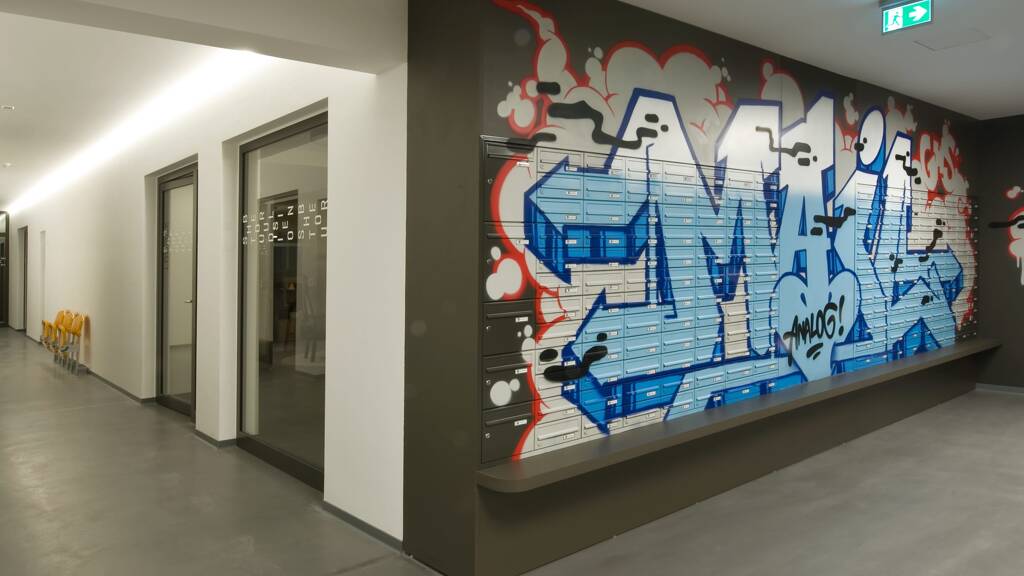 Wenn du STUDIO HOUSE betrittst, kommst du zu den Gemeinschaftsflächen, u. a. eine Lounge, eine EventKüche, ein Coworking Space, ein hauseigener Waschsalon, eine begrünte Gemeinschaftsterrasse. Dort kommst du mit deinen aufgeschlossenen