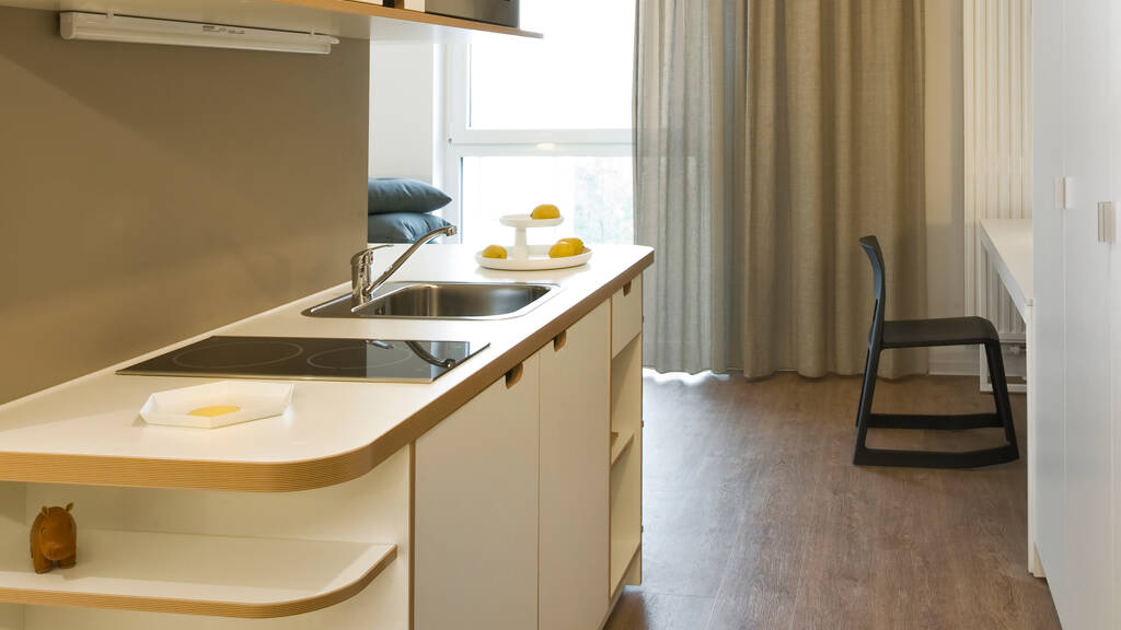 STUDIO HOUSE BERLIN bietet möblierte Studios mit hohem Komfort für Studenten. Jedes Studio ist mit eigenem Bad und offener Küche ausgestattet und bietet einen privaten Rückzugsort für konzentriertes Arbeiten.