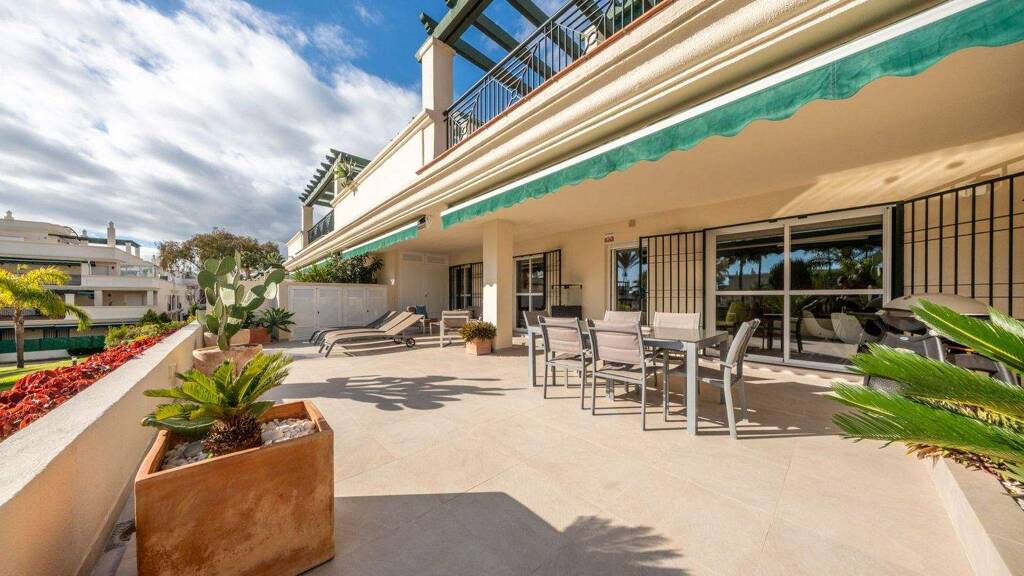 Die Wohnung befindet sich in einer ruhigen Lage innerhalb der Anlage und genießt offene Ausblicke auf die gepflegten Gemeinschaftsgärten und Poolbereiche, was eine entspannte mediterrane Atmosphäre schafft ? eine Seltenheit in dieser Nähe zu Puerto Banús.