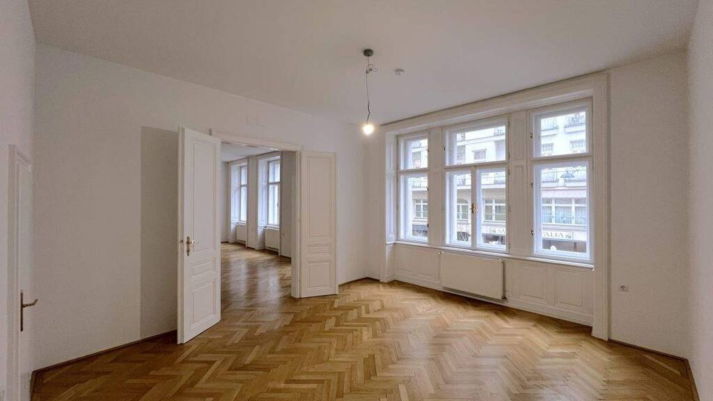 Diese stilvolle Altbauwohnung ist sehr zentral, direkt an der Dominikanerbastei im 1. Liftstock mit Aussicht zu anderen Innenstadtpalais, gelegen. Drei der vier Zimmer sind zentral begehbar und die Küche bietet ausreichend Platz für eine Essplatzmöglichkeit. Die Stilaltbauelemente, wie Doppelflügeltüren, Fischgrätparkett, Wohnsalon und Top-Zustand verleihen der Wohnung ein tolles Ambiente. Unbefristete Vermietung. Auch Büronutzung möglich.