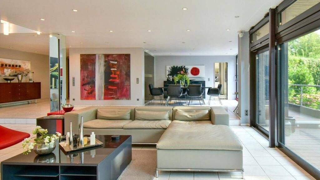 Das architektonische Konzept dieses 1980 errichteten Architektenhauses ist großzügig und zeitlos. Durch die Verwendung von hochwertigen Baumaterialien und anspruchsvollen Ausstattungsdetails wurde ein komfortabler Lebensmittelpunkt mit viel Atmosphäre und Ausstrahlung geschaffen. In den Jahren 2002 bis 2003 ist die Villa mit erheblichem Aufwand modernisiert und fortlaufend gepflegt und instand gehalten worden. Die Hauptwohnung erstreckt sich über das Erd- sowie das Obergeschoss. Im Untergeschoss ist ein Gästebereich wohnlich ausgebaut worden, der über einen eigenen Eingang verfügt. Der Pool befindet sich ebenfalls im Untergeschoss. Er ist mit großen Fenstern und einer separate Terrasse ausgestattet.