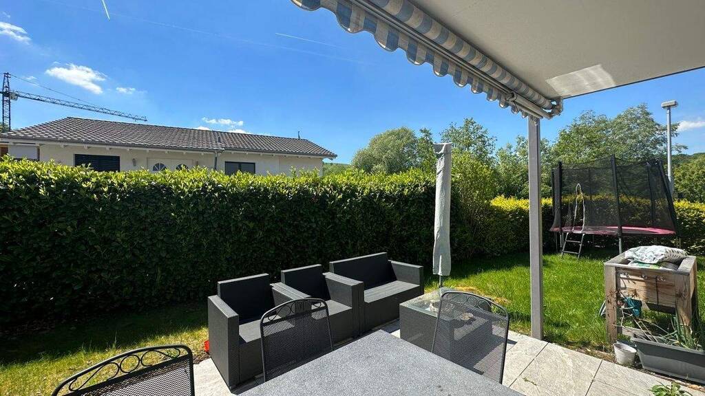 In der Küche selbst hat es weiteren Platz um einen Küchentisch zu platzieren. Hier kann in gemütlicher Runde für gut 4 Personen in der Küche gespeist werden. Ein Durchgang bringt Sie direkt in das Wohn-Esszimmer. Also für mehr Personen, oder wenn es eleganter sein soll, gibt es eine weitere Möglichkeit in dem kombinierten Wohn- und Esszimmer einen grossen Esstisch aufzustellen. Flankiert mit einem tollen, runden Schwedenofen ist hier das Wohlfühlambiente äusserst hoch. Ausserdem ist er auch sehr praktisch, da der Ofen auch eine gute Heizfunktion hat. (Generell wird das Haus mit Bodenheizung geheizt). Das grosszügige Zimmer lässt natürlich auch einen grossen Wohnbereich zu. Ausserdem gelangen Sie von hier auf die Überdachte Terrasse. Der Garten verfügt über genügend Platz um auch ein Trampolin oder eine Spielecke einzurichten.