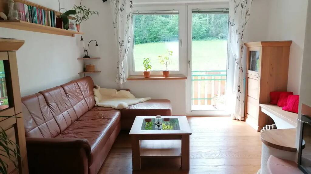 gemütlichen Kachelofen. Schreibtisch und Badezimmermöbel wurden vom Tischler