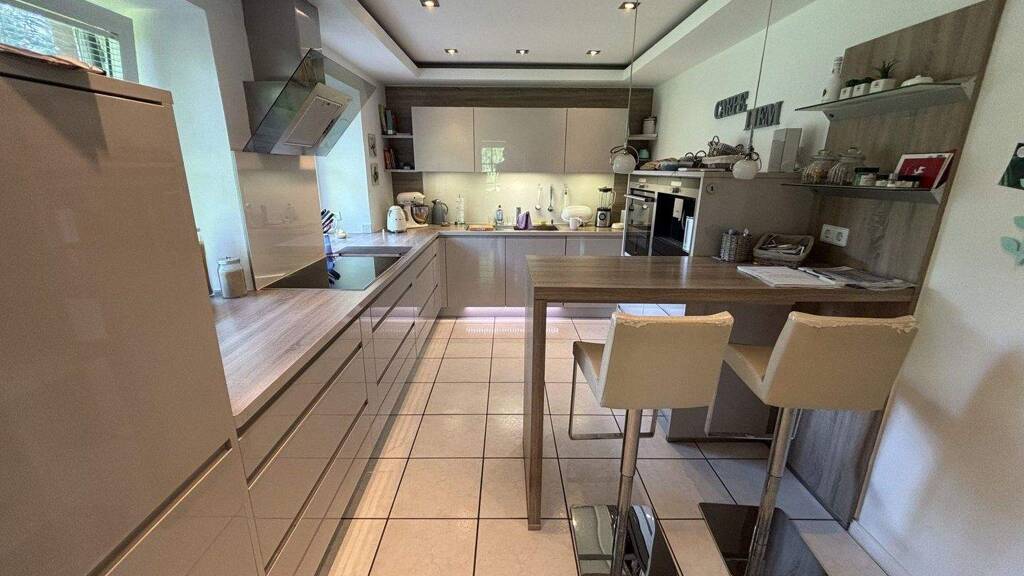 Einziehen und sich Wohlfühlen heißt hier die Devise. Die großzügige Doppelhaushälfte in Form einer Eigentumswohnung befindet sich in einem sehr gepflegten Zustand. Im Jahr 1994 wurde die Immobilie aufwendig umgebaut und erweitert. Das Erdgeschoss teilt sich wie folgt auf: Diele, Küche, Wohnbereich mit Zugang zur überdachten Terrasse mit zusätzlicher Markise, ein weiterer Wohnbereich mit Kamin, Flur mit Zugang zum Garten, Gäste-WC mit Dusche, Heizungsraum, Abstellraum, Wasch-/und Trockenraum mit angrenzenden WC sowie einem Gemeinschaftsraum mit Zugang zum Garten. Im Dachgeschoss befindet sich Flur, Badezimmer mit Wanne und Dusche, Schlafzimmer mit angrenzender Ankleide und ein Arbeitszimmer. Das Dachgeschoss wurde aufwendig erweitert und bietet Ihnen eine zusätzliche, helle Nutzfläche. Hier erwartet Sie ein offener Wohn-/Ess-/Kochbereich mit Zugang zu einer Galerie, ein Schlafzimmer mit Balkon und angrenzender Ankleide sowie ein Badezimmer mit Badewanne, Dusche und Sauna. Der großzügige Garten lädt mit verschiedenen Sitzbereichen und einem Teich zum Entspannen ein-hier finden Sie sowohl sonnige als auch schattige Rückzugsorte, die perfekt für erholsame Stunden geeignet sind. Beheizt wird die Immobilie über eine Gasbrennwertheizung (Baujahr ca. 2007). Ein gültiger Energieausweis befindet sich in Vorbereitung. Im Wohnbereich des Erdgeschosses sowie im Badezimmer im Dachgeschoss befindet sich Fußbodenheizung. Für Ihre PKW stehen Ihnen drei Garagen zur Verfügung. Da die jetzige Zufahrt über das Grundstück der benachbarten Haushälfte verläuft, müsste man eine neue Zufahrt anlegen oder eine weitere Stellplatzmöglichkeit schaffen. Das Objekt ist teilunterkellert und verfügt über vier Gemeinschaftsräume.