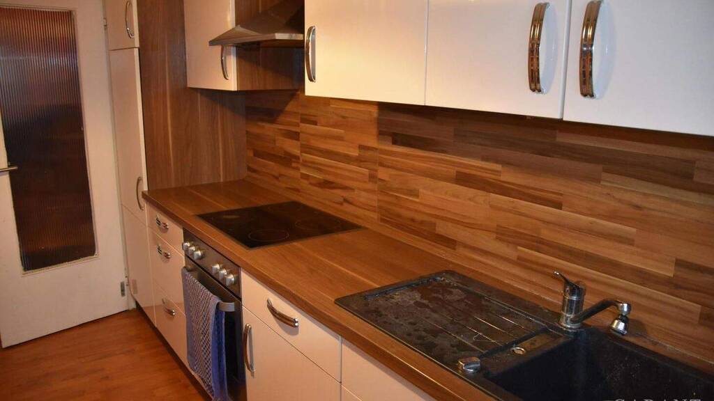 Die im Kaufpreis enthaltene Einbauküche ist funktional gestaltet und bietet alle wichtigen Elemente für den täglichen Gebrauch. Das Schlafzimmer punktet mit einer angenehmen Größe und genügend Platz für einen großen Kleiderschrank sowie einen kleinen Sekretär oder eine zusätzliche Ablagefläche.