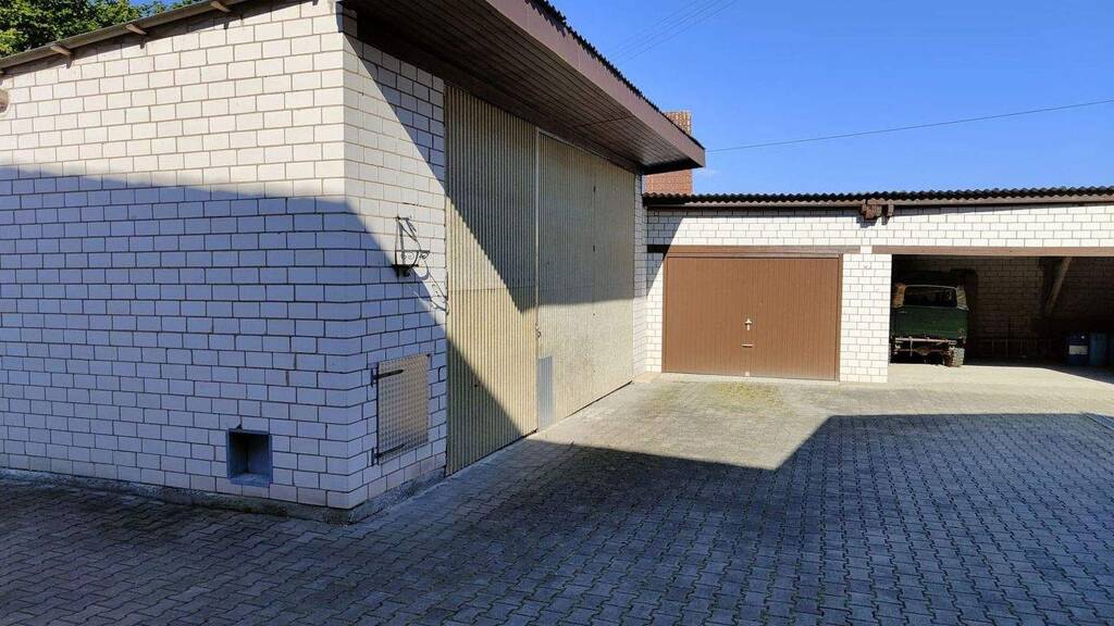 Ein besonderes Highlight ist der große Hinterhof, der vielseitige Nutzungsmöglichkeiten eröffnet. Dort befinden sich drei Garagen sowie eine Scheune mit zusätzlichem Lagerbereich, die viel Platz zum Arbeiten oder Lagern bieten. In der Scheune wurde früher bereits eine Kfz-Werkstatt betrieben, weshalb die Räumlichkeiten optimal für gewerbliche Tätigkeiten geeignet sind. Eine Hebebühne ist bereits vorhanden, sodass eine Werkstatt oder ein handwerklicher Betrieb sofort aufgenommen werden kann.