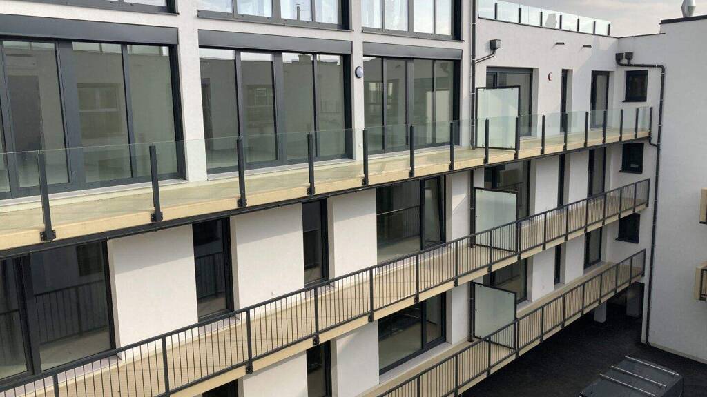 Im Inneren erwarten Sie optimierte Grundrisse und moderne Ausstattung: kontrollierte Wohnraumlüftung, Fußbodenheizung, Aufzüge in alle Stockwerke, Klimaanlagen in ausgewählten Wohnungen, moderne Gegensprechanlage und Raumthermostate. Bodentiefe Fenster durchfluten die Wohnungen mit natürlichem Licht - auf den Balkonen, Loggien und Terrassen lässt sich Sonne auftanken und Frischluft schnappen. Der Innenhof bietet Grünflächen und einen Spielplatz für die kleinen Bewohner. Die Anlage wird in sich geschlossen sein - das heißt, nur Eigentümer werden Zutritt haben.