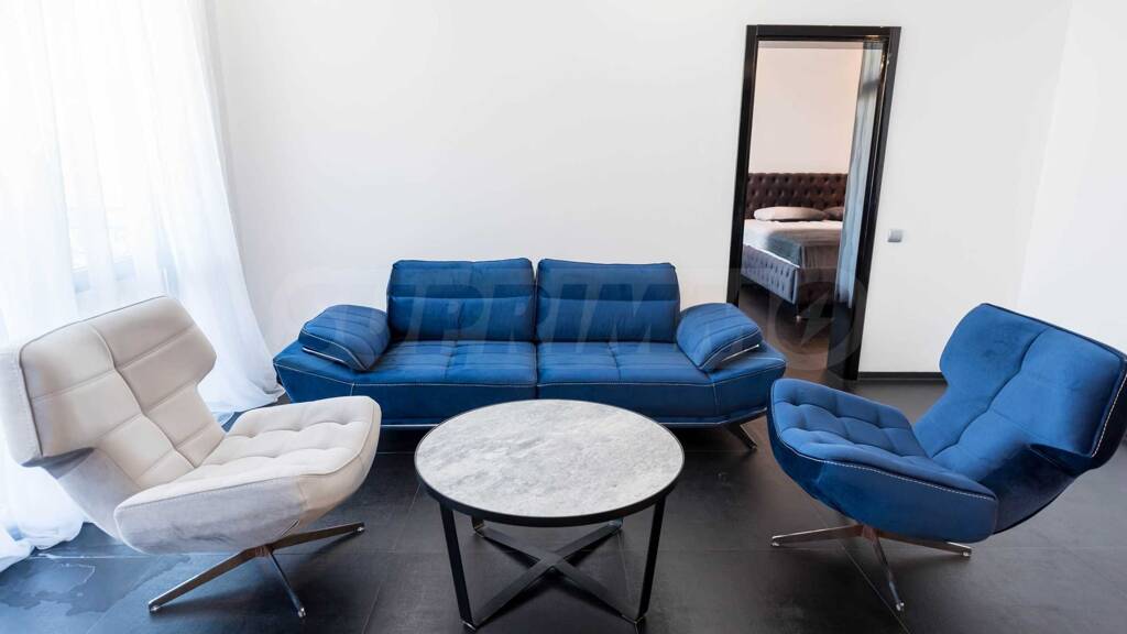 Die Wohnung ist mit hochwertigen Materialien, eleganten Möbeln und hochwertigen Geräten ausgestattet.