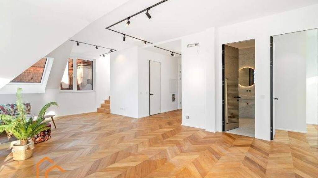 Hier verschmelzen historische Substanz, moderne Technik und luxuriöse Materialität zu einem Dachgeschoss-Unikat mit nachhaltiger Wertigkeit.