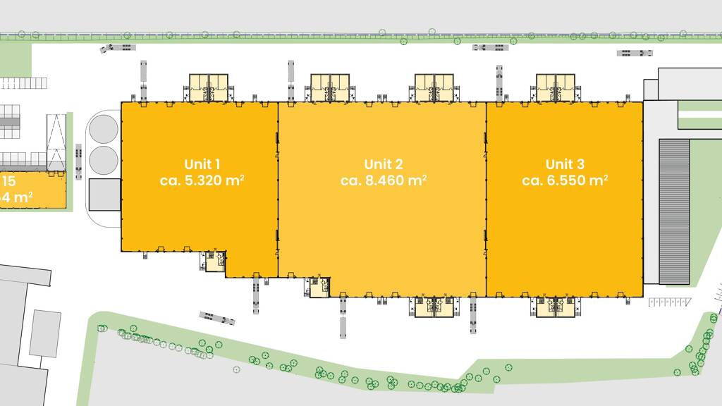 - Hallenflächen: ca. 1.000 - 20.335 m² - Solitär-Bürovorbauten ein- und zweigeschossig ab 100 m² - PKW-Stellplätze: 237 - UK-Binder/Lichte Höhe: 9 m - Stahlfaserbetonsohle mit 5,0 t/m² Flächenlast - Glasfaseranbindung möglich - Staplerladestationen - Sonderausbau nach Mieterwunsch möglich - Zusätzliche Büroflächen ab 500 m² in einem kernsanierten separaten Bürogebäude